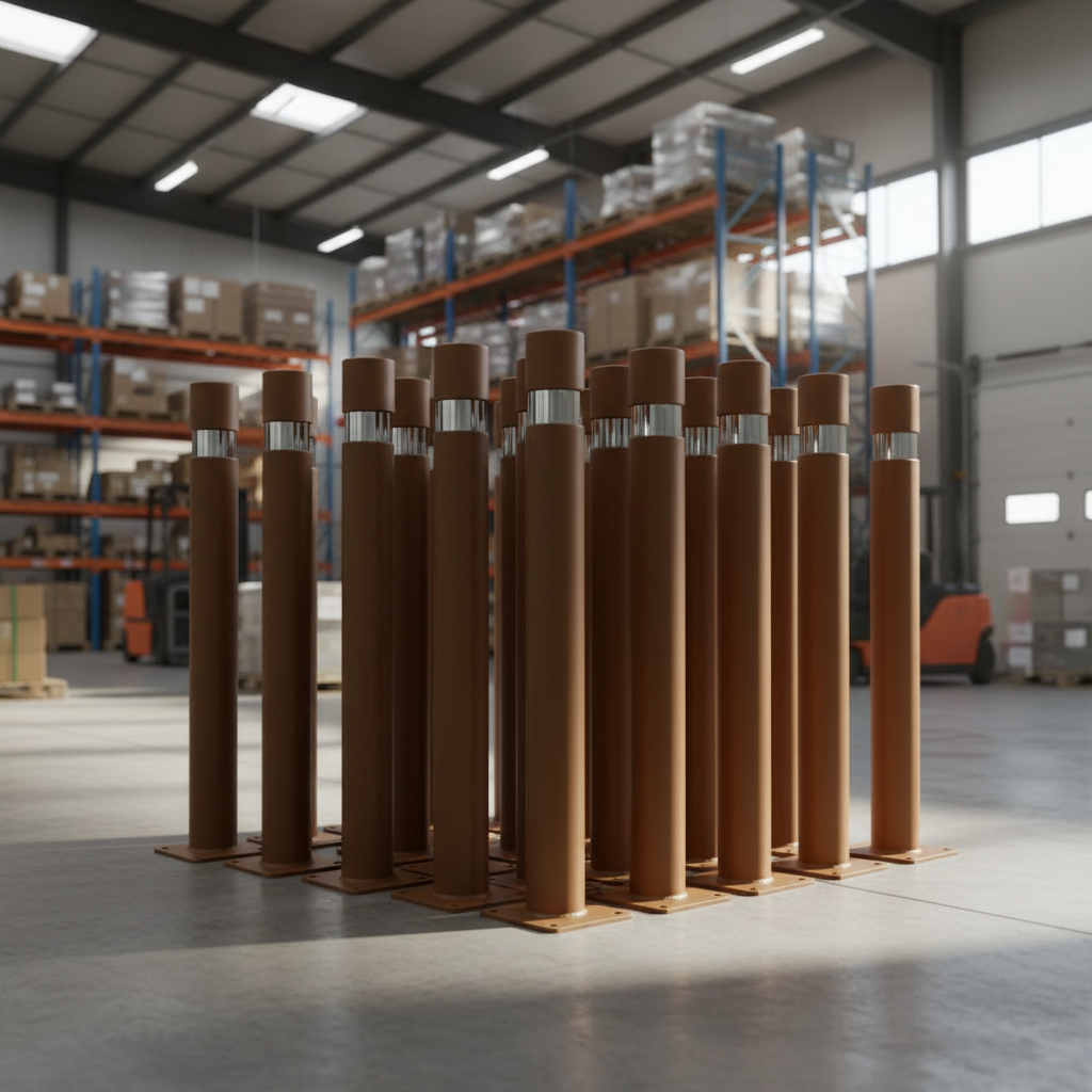 Pilona de hierro tubo de 90mm lacado al horno con anillo de inoxidable con placa de 150x150x8mm ofrece un diseño elegante a un precio muy competitivo