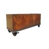 la jardinera se asienta sobre un bastidor de ruedas de acero.